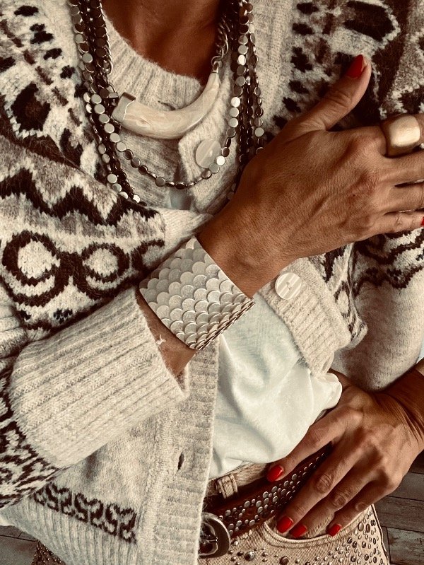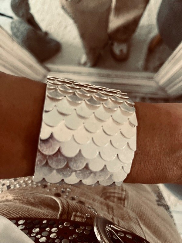 Brazalete fantasía plata , simil escamas