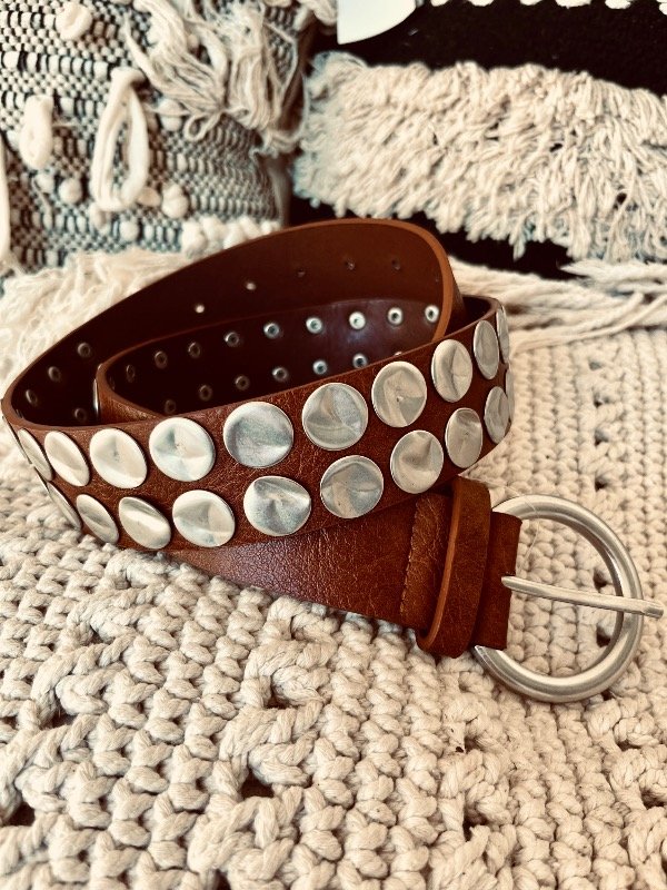 Cinturón en cuero ecológico con tachas plata
