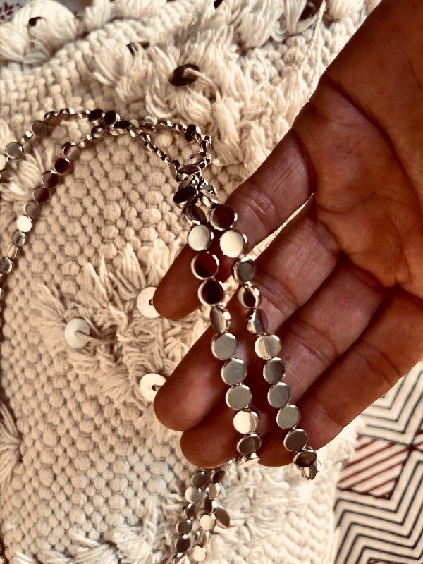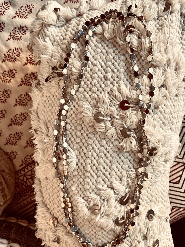 Collar fantasía en plata , largo , se puede usar doble