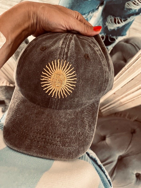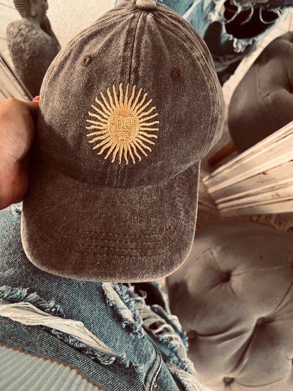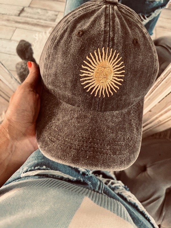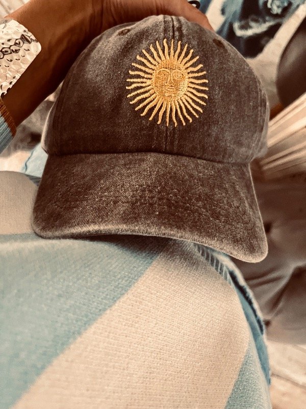 Gorra en gabardina gastada con bordado sol Argentina