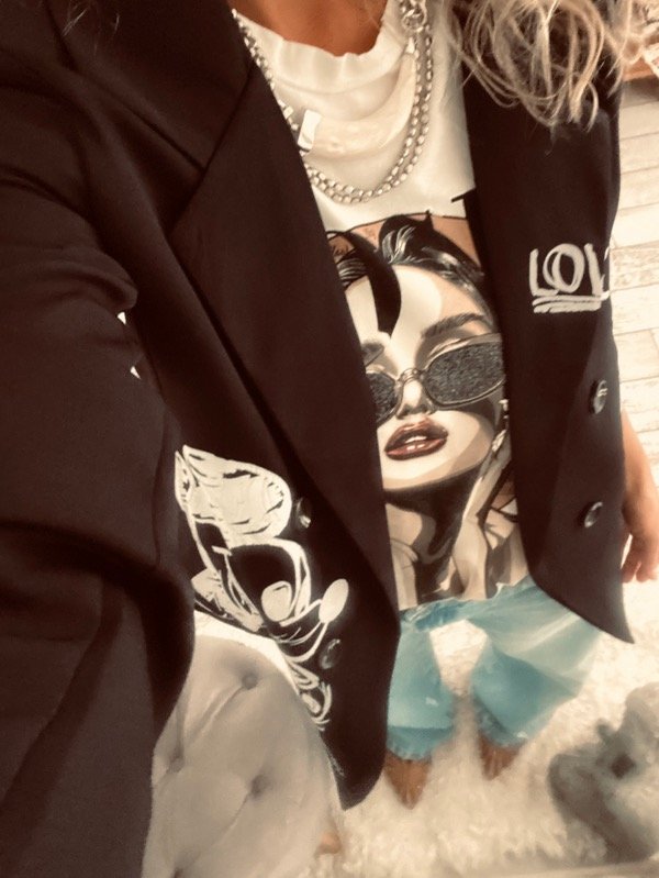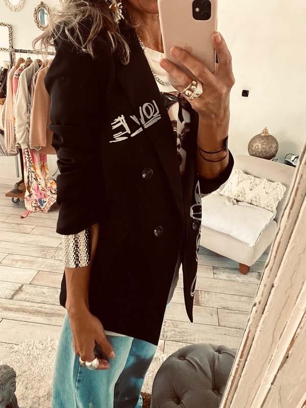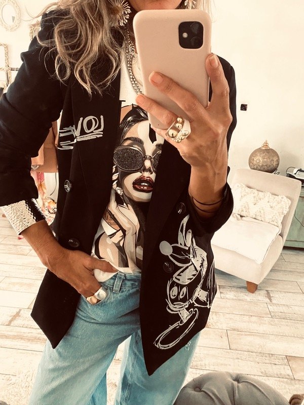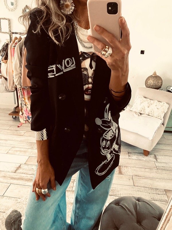 con bolsillos , hombreras y forrado, estampa interevenida , EXCLUSIVO
