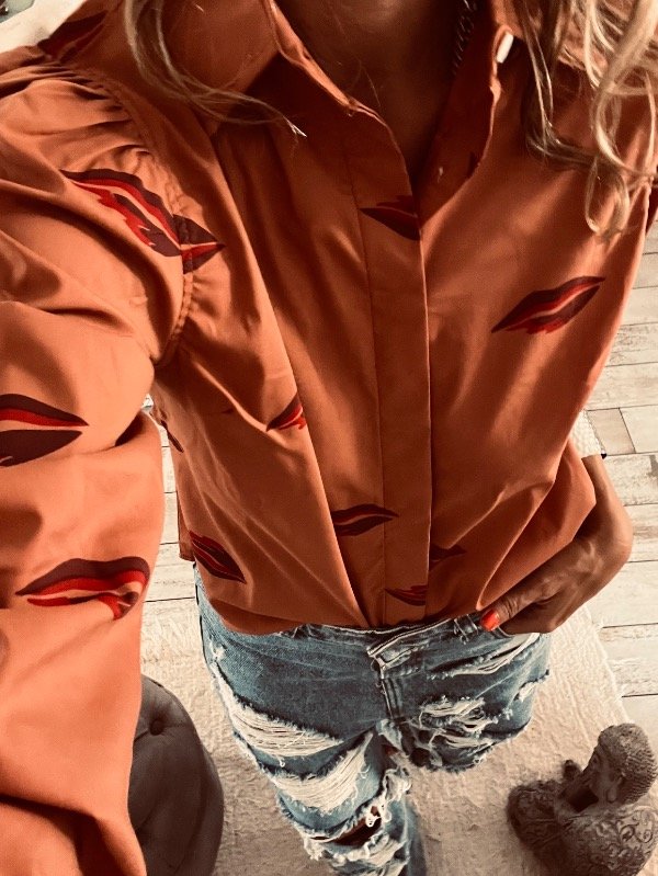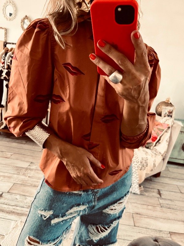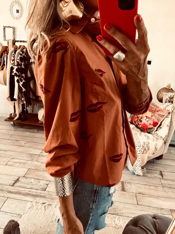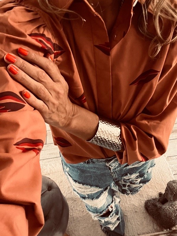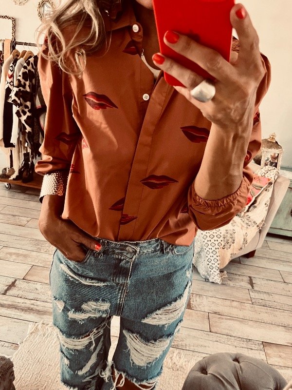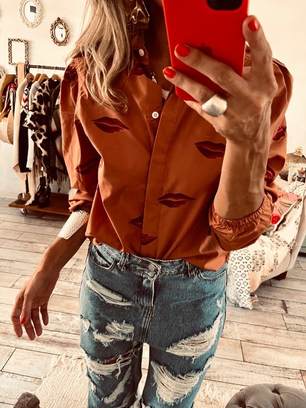 camisa en poplin semi elastizada , con mangas princesa y elasico en puño al codo ,