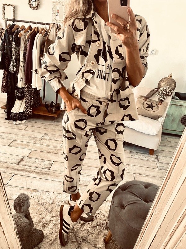Babucha en gabardina estampada , con elástico en cintura y Tura regulable