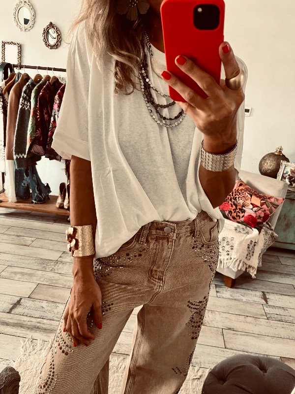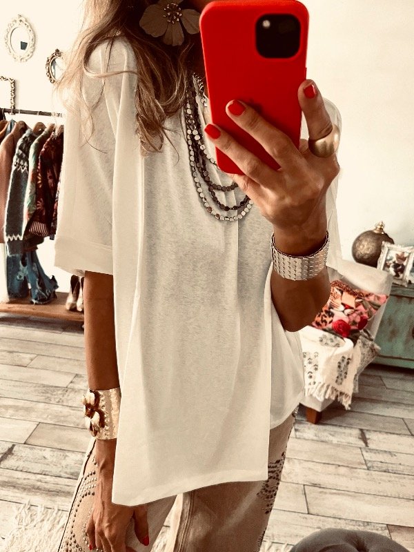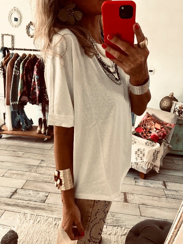 Remera importada en algodón premium , cuello redondo mangas cortas amplias , estilo over