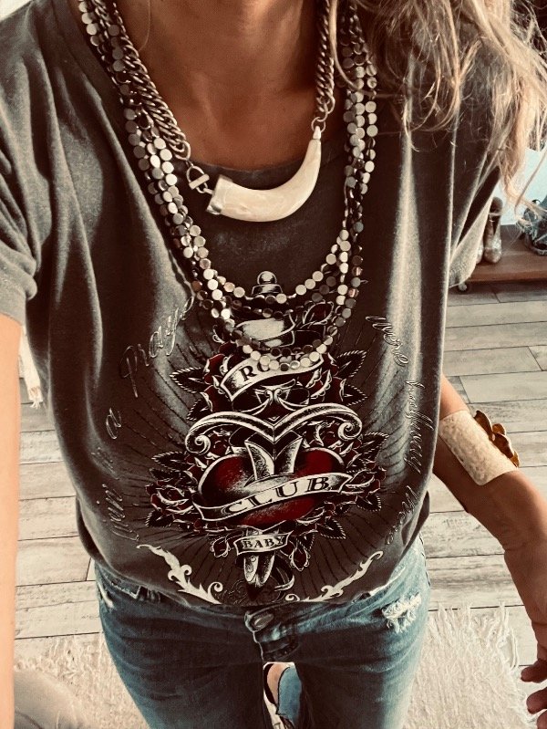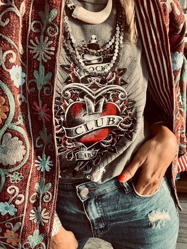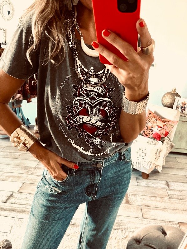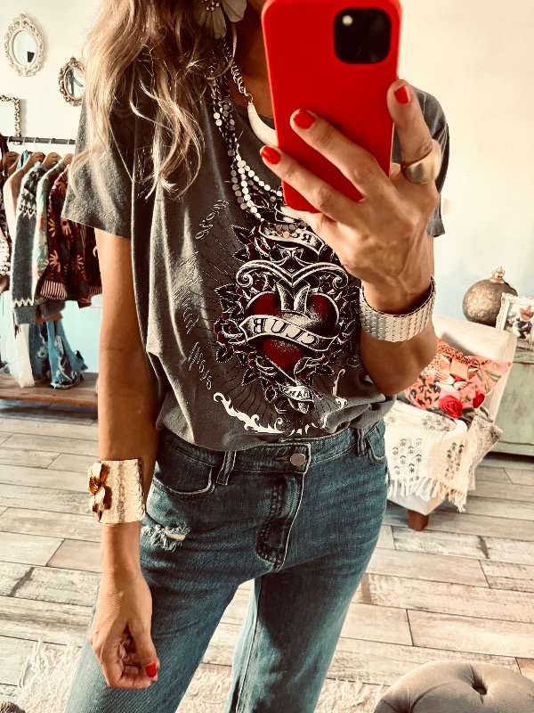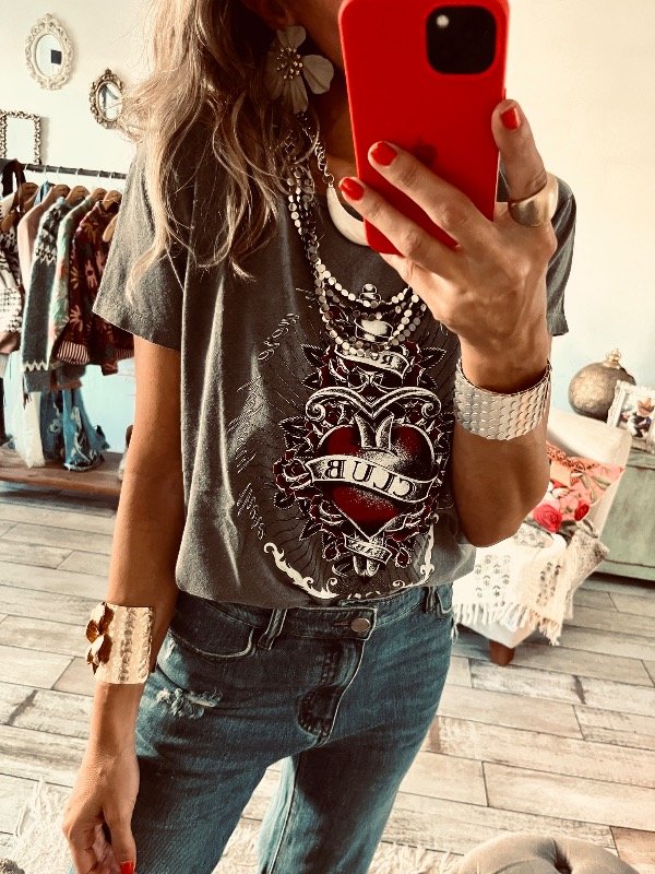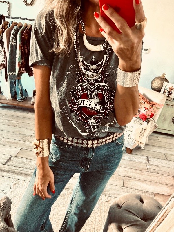 Remera de algodón con estampa , modelo clásico , cuello redondo manga corta