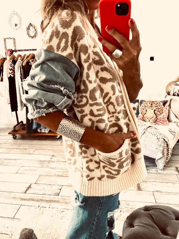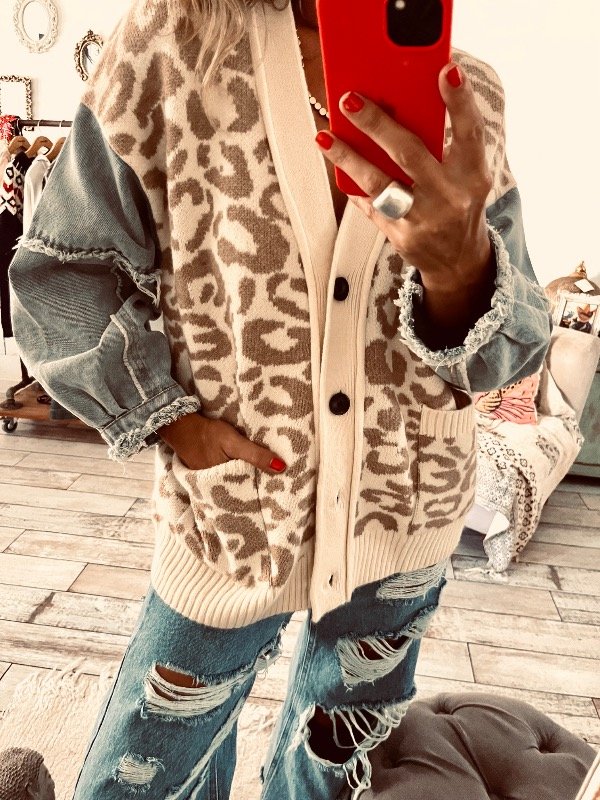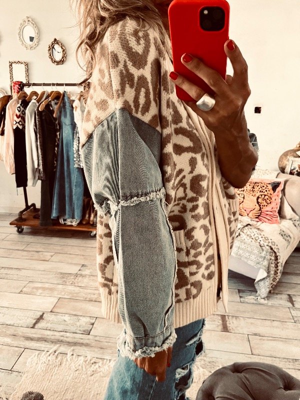 Saco importado en mezcla de lana y mangas de jeans , abotonado al frente con bolsillos