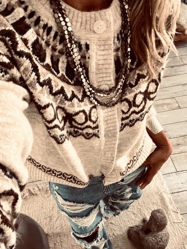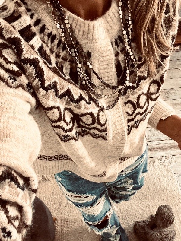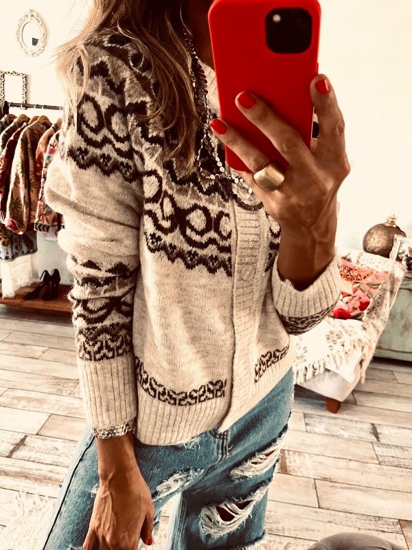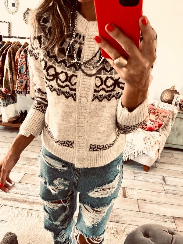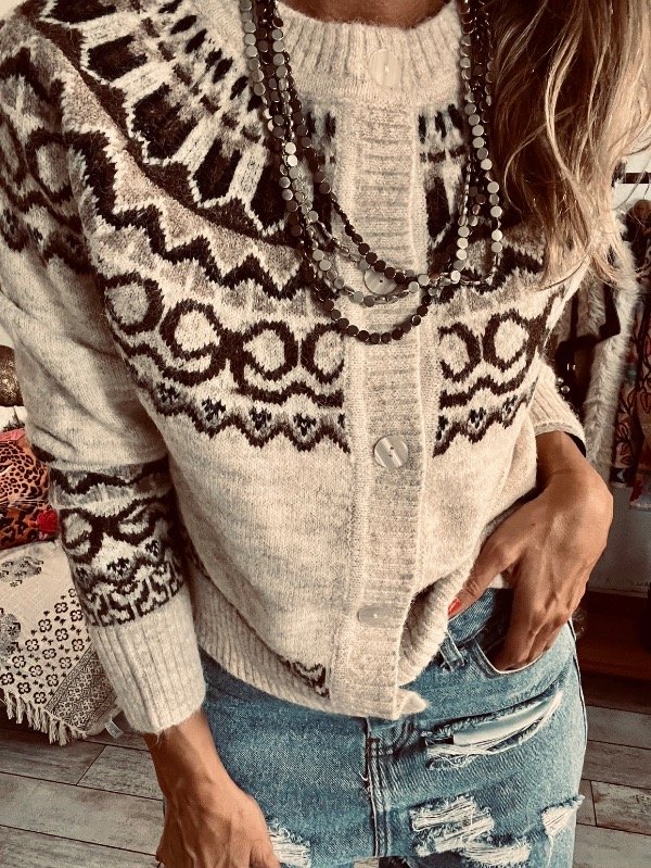 Saco importado en la suave con guardas en escote , espalda y puños . Abotonado al frente , cuello redondo