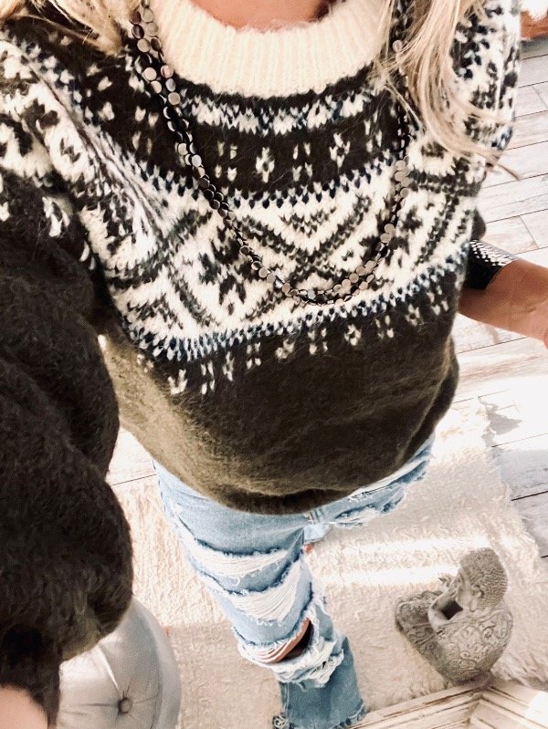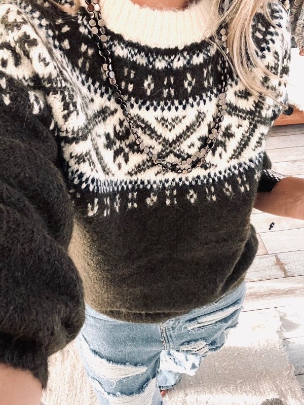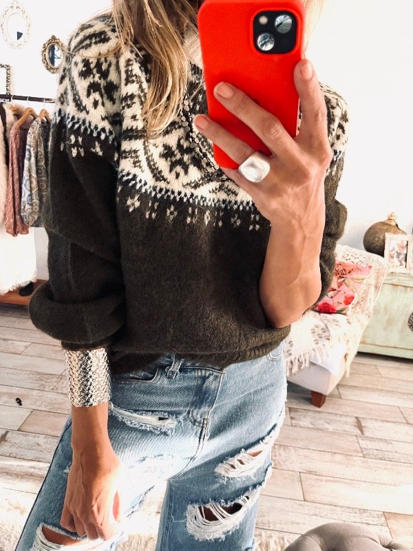 Sweter importado estampado Bariloche , cuello redondo , lana apelmazada suave