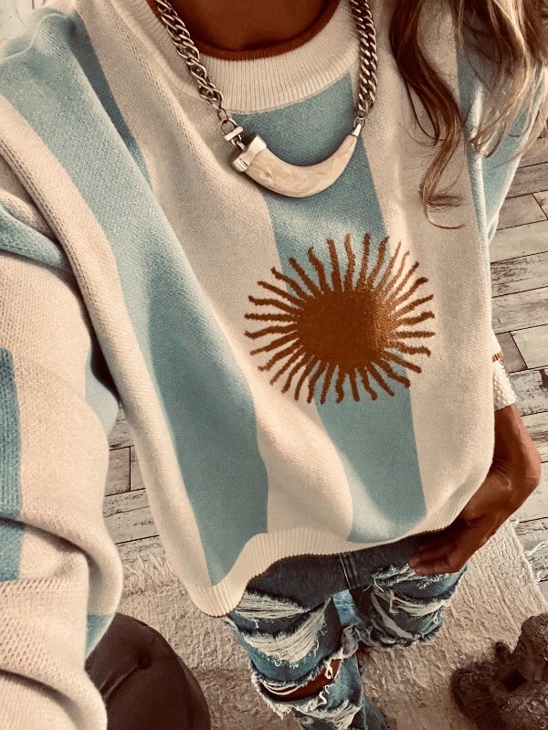 Sweter corte clásico cuello redondo , talla única , mezcla de hilado suave acrílico