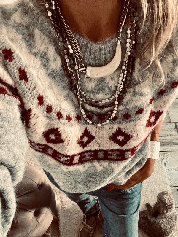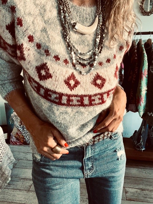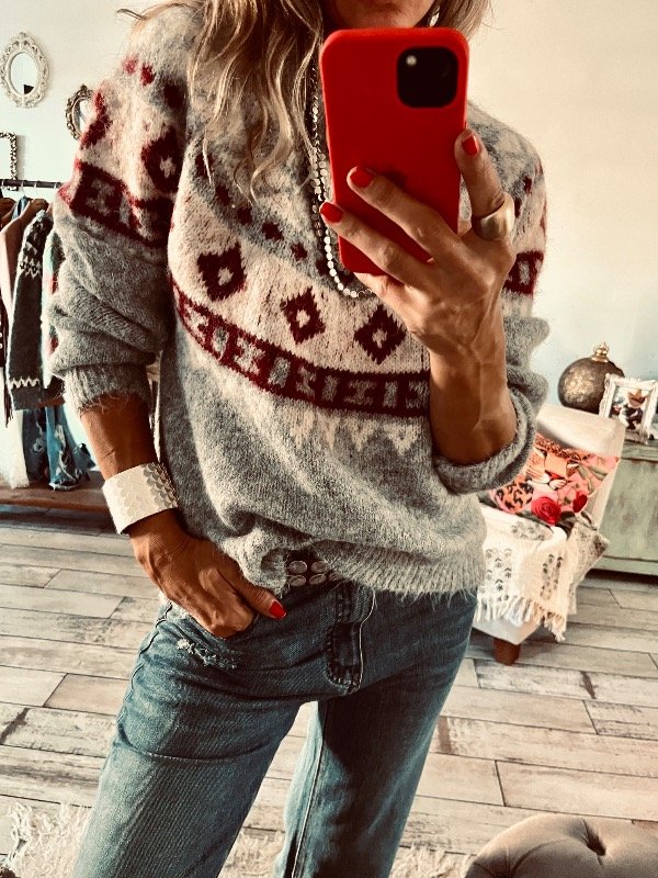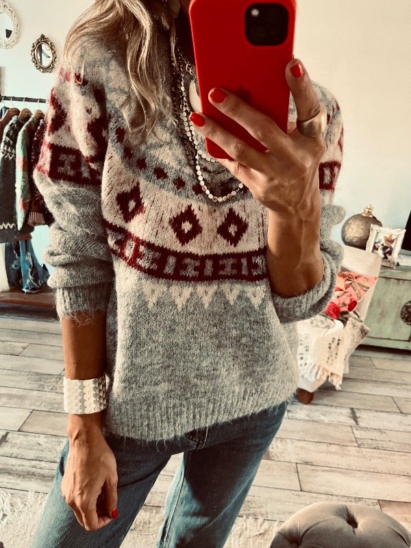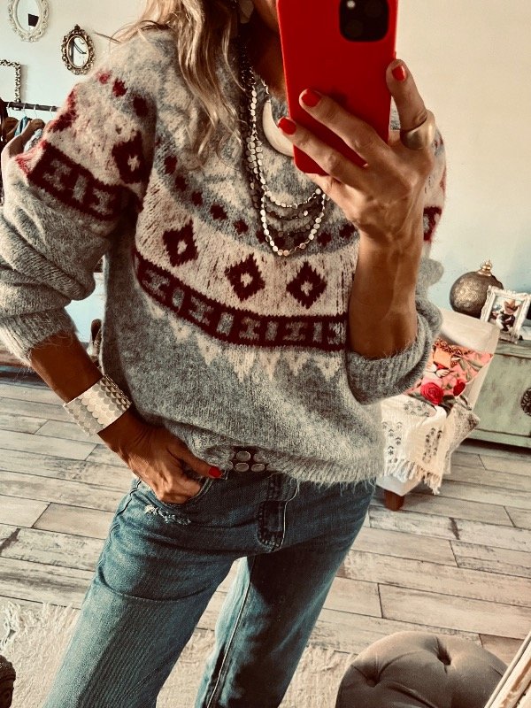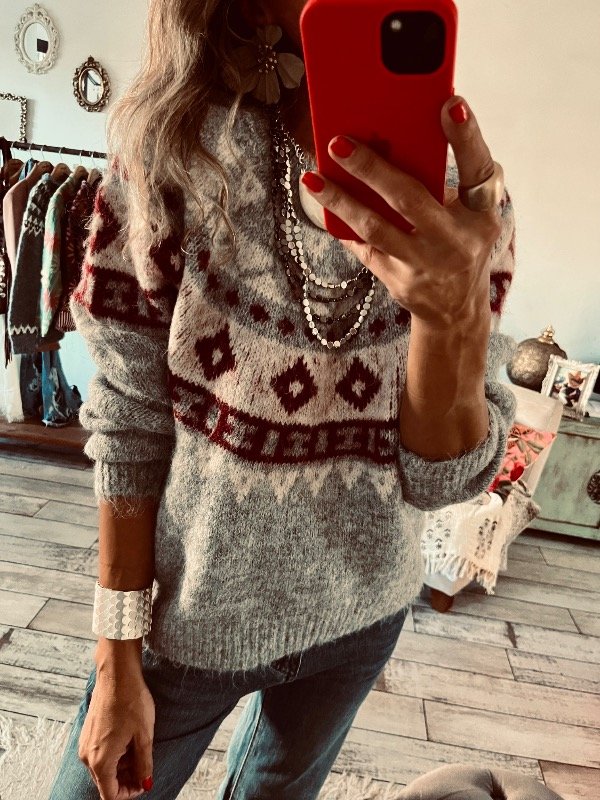 Sweter importado en lana apelmazada suave , modelo clásico cuello redondo
