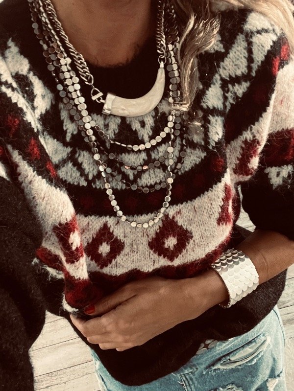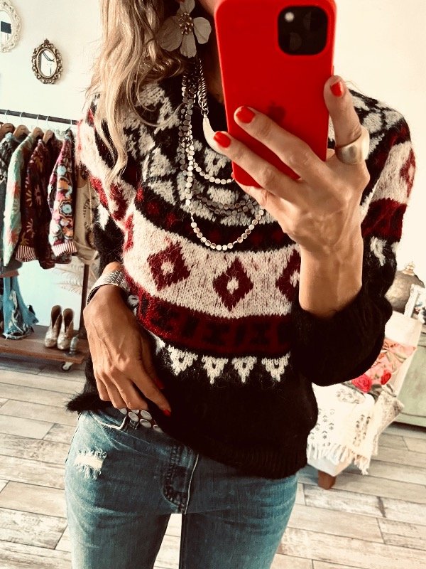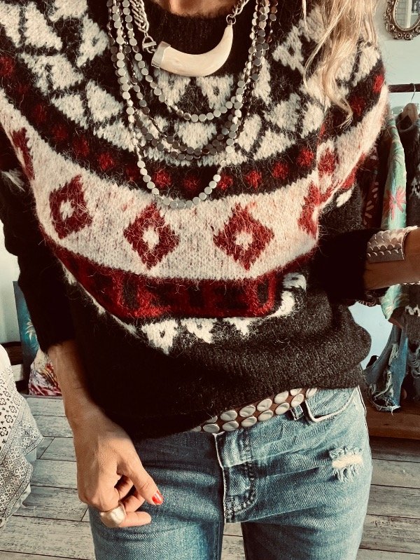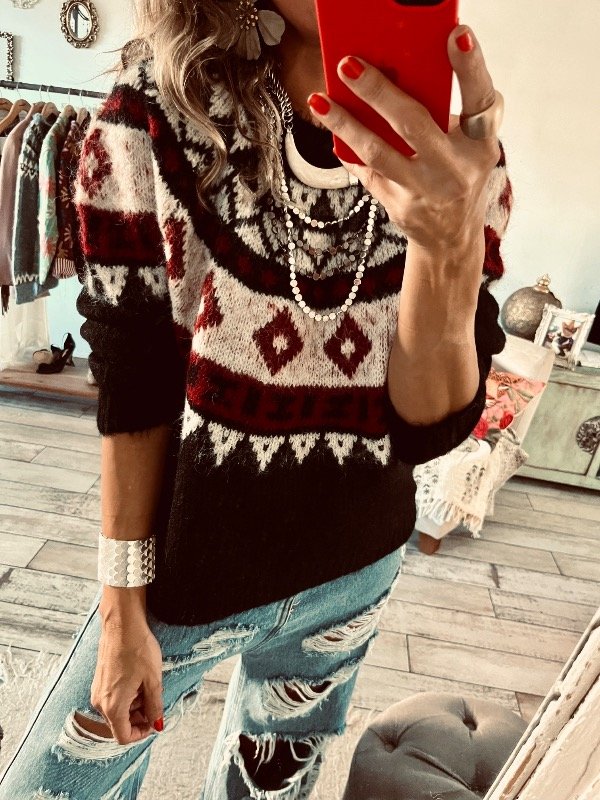 Sweter importado en lana apelmazada suave , modelo clásico cuello redondo