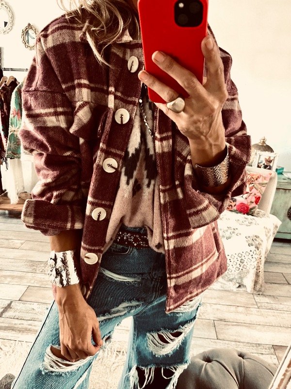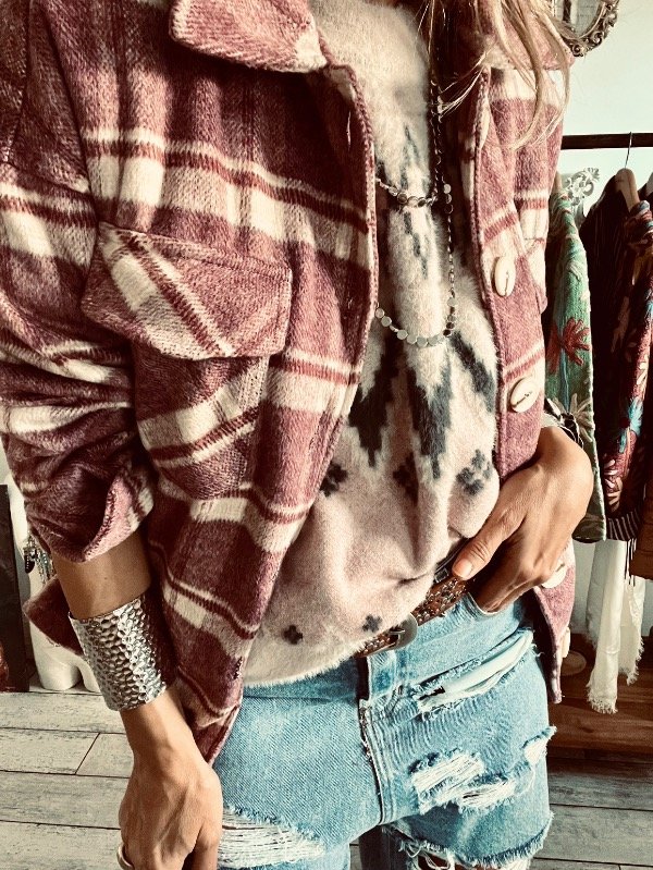 Camisaco en paño abrigado corte oversize, con botones delanteros , bolsillo delantero y bolsillos delanteros bajos
