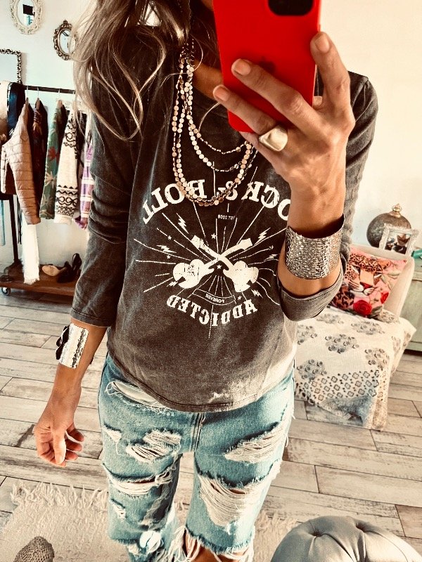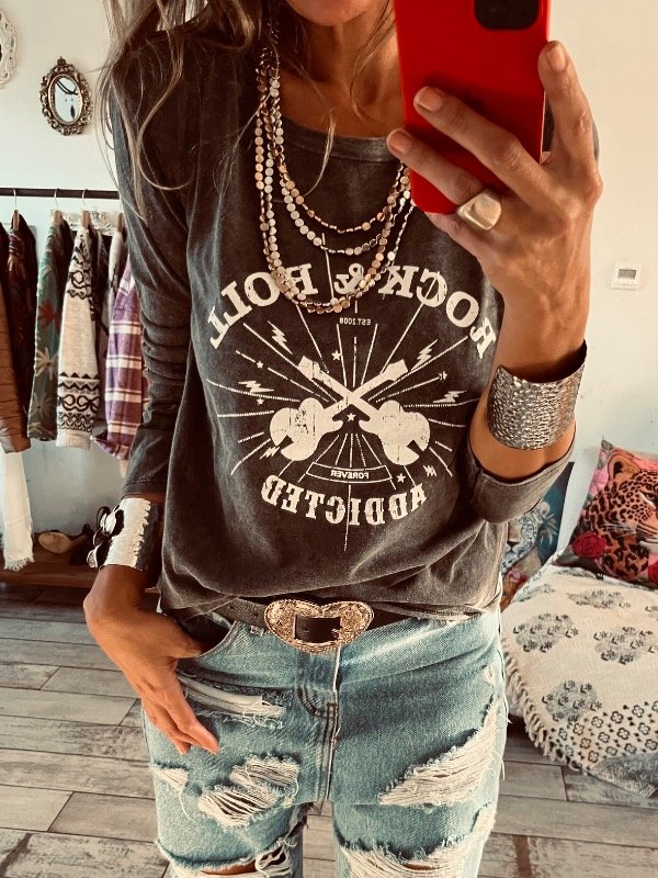 Camiseta de algodón manga larga , cuello redondo con estampa